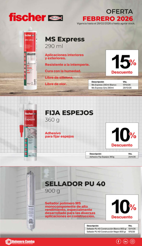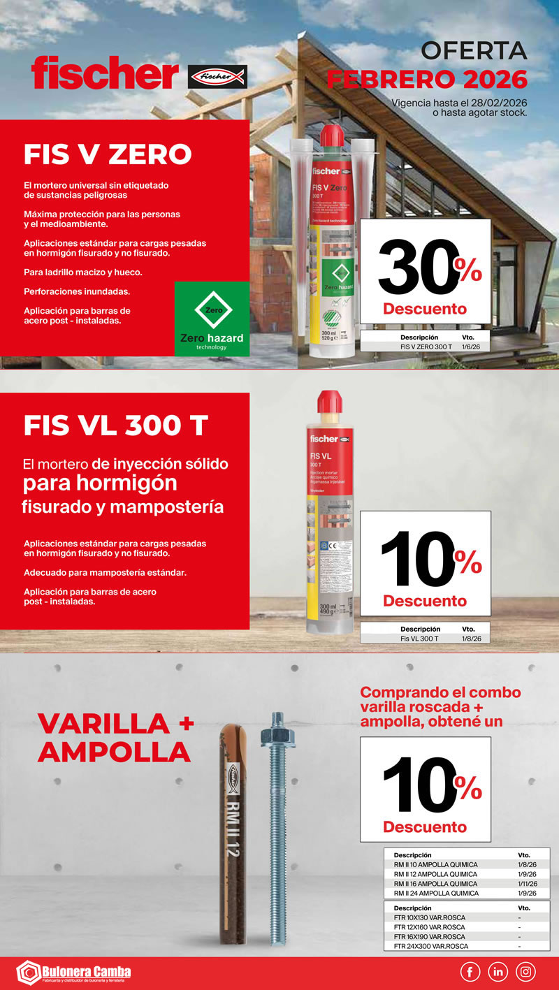 ¡Máxima Potencia en Anclajes con 30% OFF! En Bulonera Camba te traemos el mortero universal FIS V ZERO, la solución sin sustancias peligrosas que protege al medioambiente y a tu equipo.+1