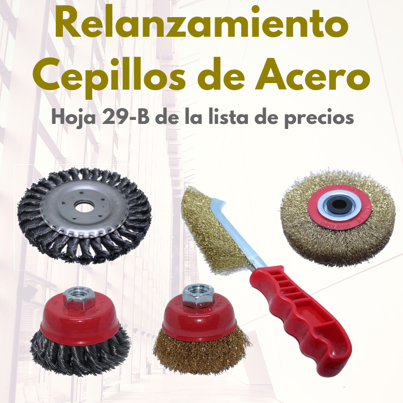Relanzamos los cepillos de acero con mango ergonómico, planos y copa, de acero trenzado y ondulado.